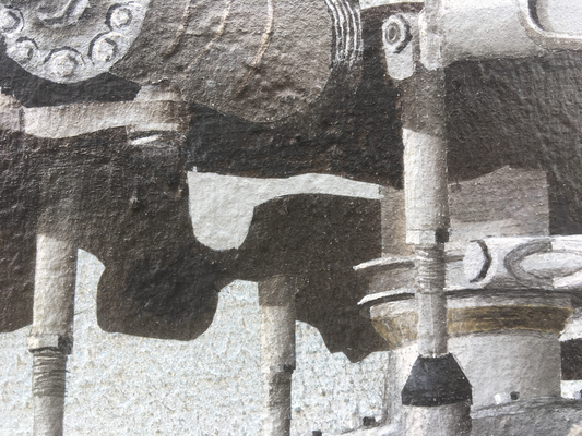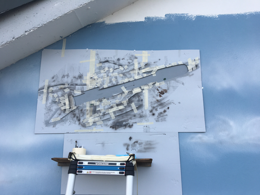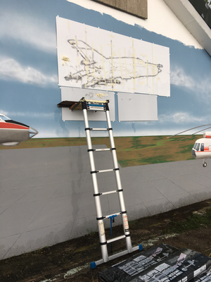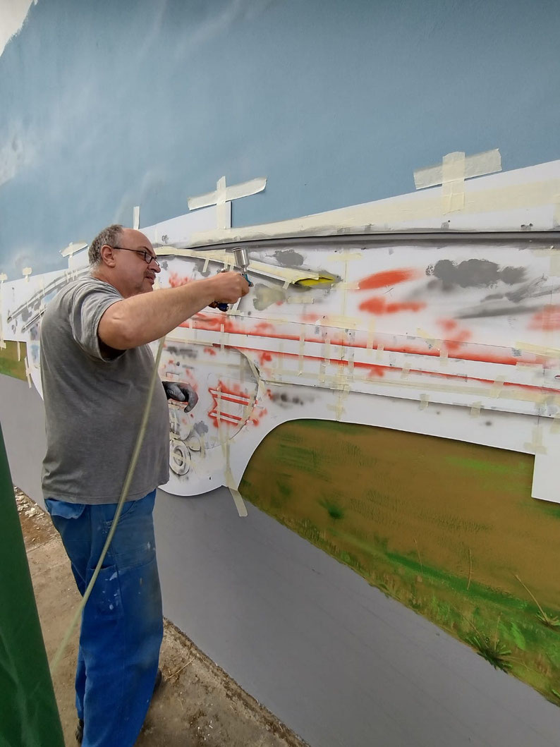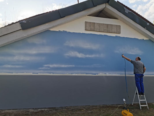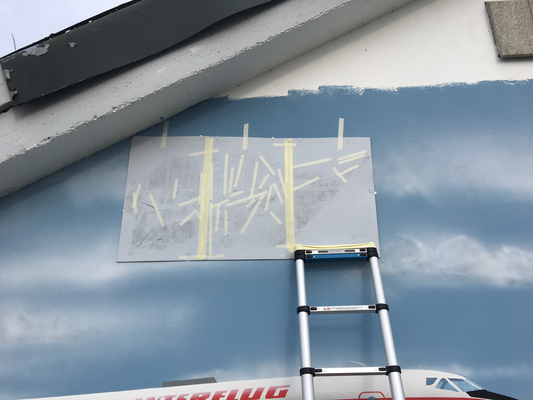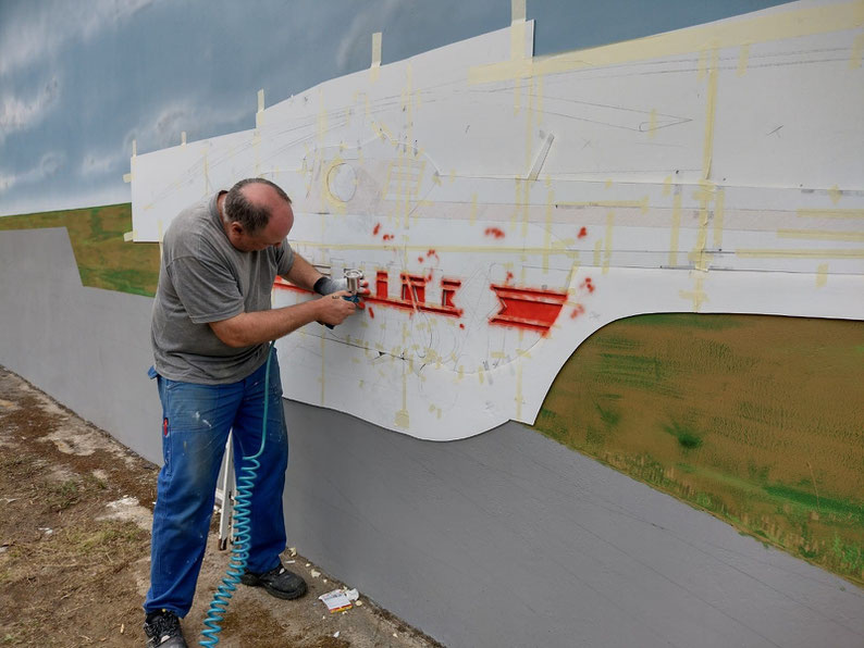 Bis jetzt beträgt die reine Arbeitszeit an der Wand ca. 4 Monate ohne die Recherchen und die Vorarbeiten.